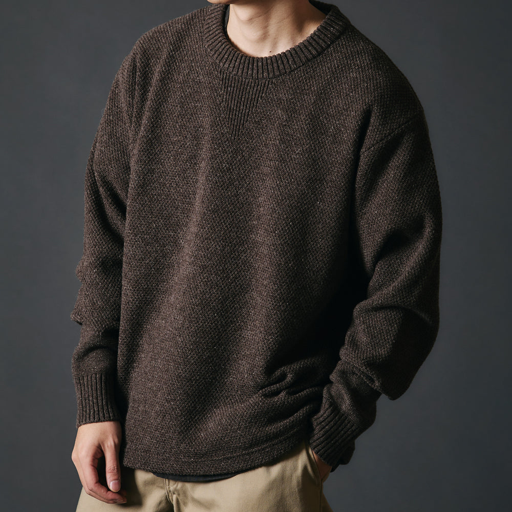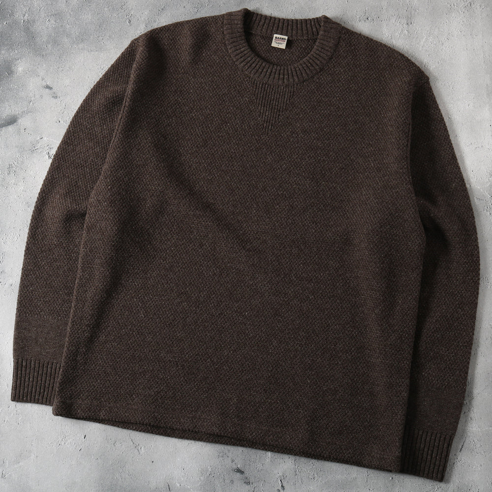 This classic BARNES body is made on an old-style knitting machine—one that's now rarely used in modern production. The result is a fabric with a truly unique texture, unlike anything you’ll find elsewhere.Our signature two-tone dyeing technique adds even more character, giving each piece a distinct, handcrafted feel.We’ve put great care into every detail, but above all, we hope you’ll feel the everyday comfort that only a piece like this can offer.
